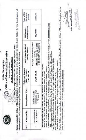 Invitations for bids for construction of Kalika Mandir compound wall, Kalika-08.