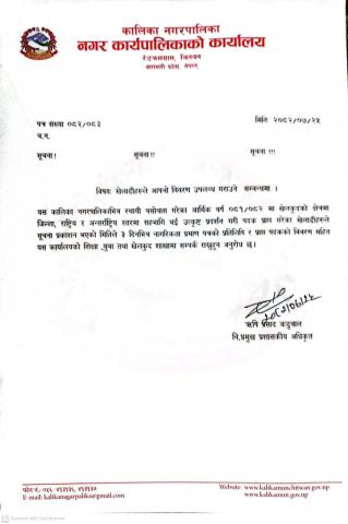 सम्झौताको लागि सुचि प्रकाशन गरिएको वारे, कालिका नगरपालिका तर्फको विभिन्न कार्यक्रम, पशु सेवा शाखा।