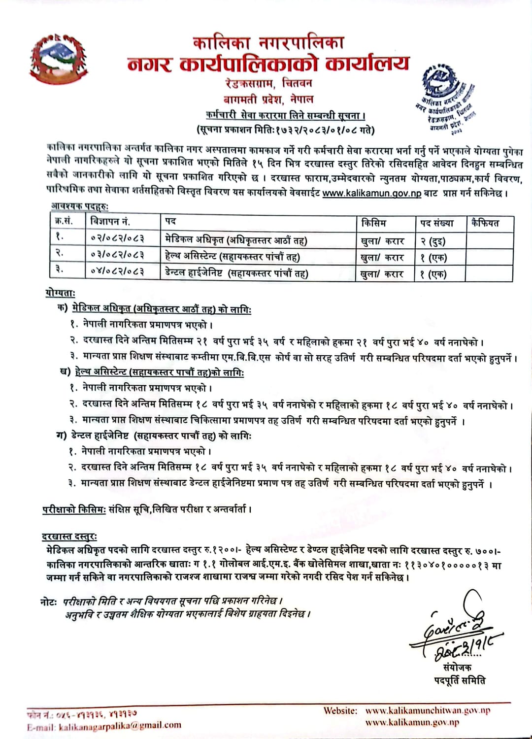 कालिका नगर कार्यपालिका, वडा कार्यालय तथा स्वास्थ्य संस्थामा कार्यरत कर्मचारीहरुको सम्पर्क विवरण।
