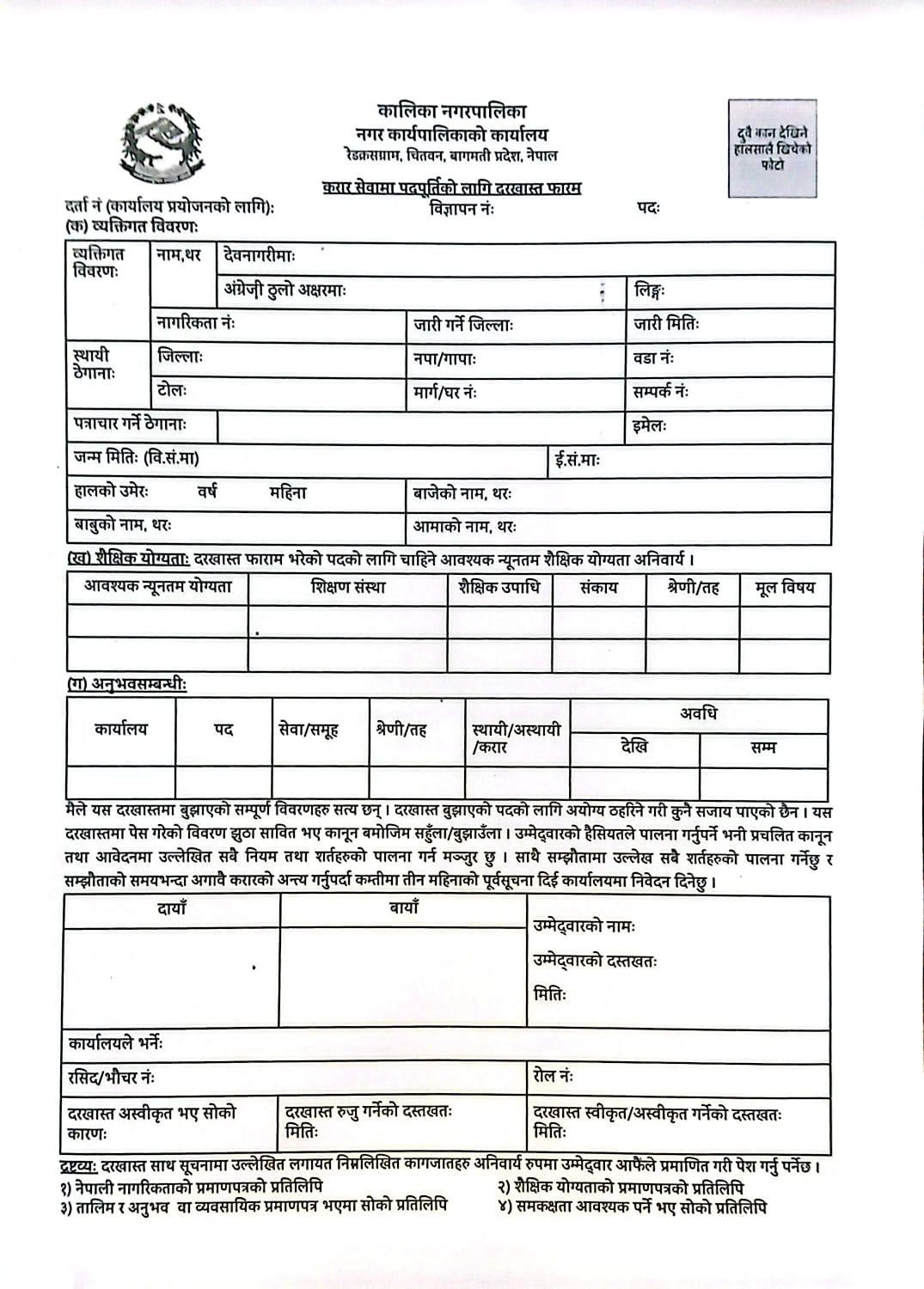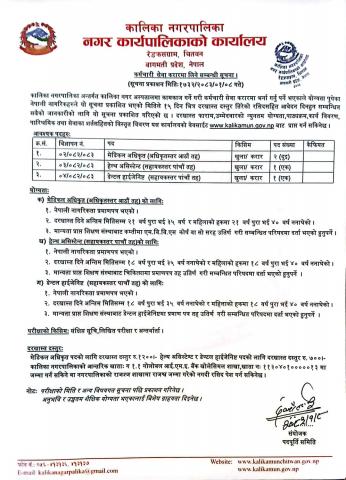 न्युनतम रोजगारीमा संलग्न हुनका लागी निवेदन पेश गर्ने सम्बन्धी सूचना।