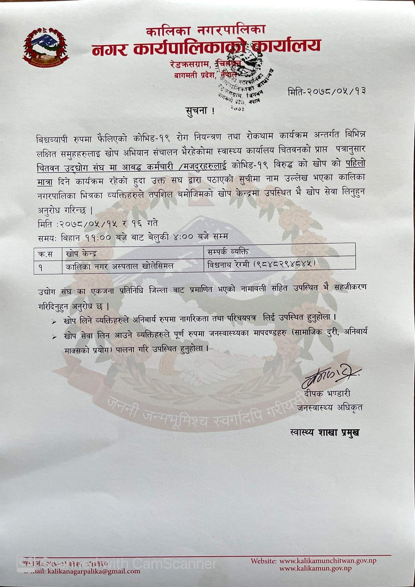 खोप सेवा लिने वारेको सूचना ।