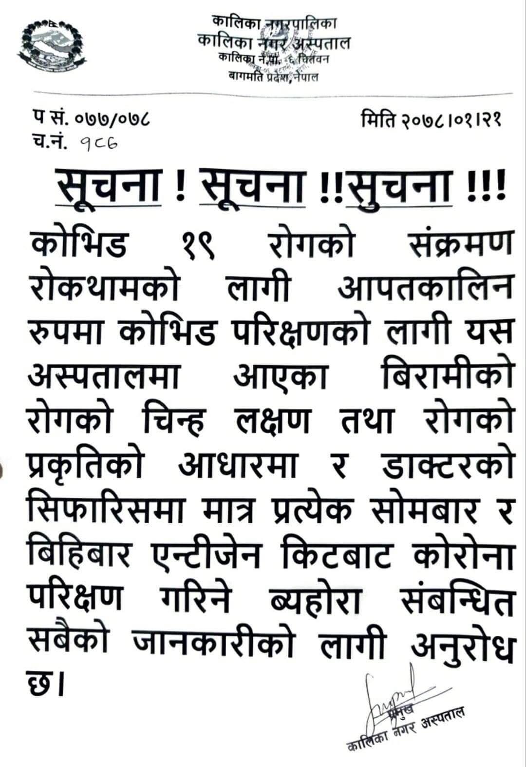 स्वास्थ्य शाखावाट प्राप्त सूचना वारे।
